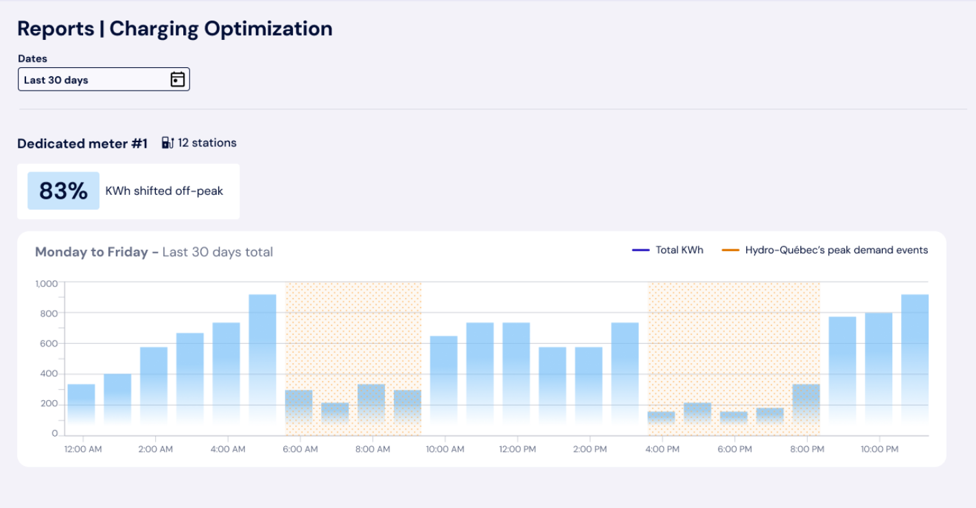 By rescheduling charging activities, Cleo’s smart platform was able to shift up to 85% of kWh consumption outside of peak hours during winter 2024-2025.